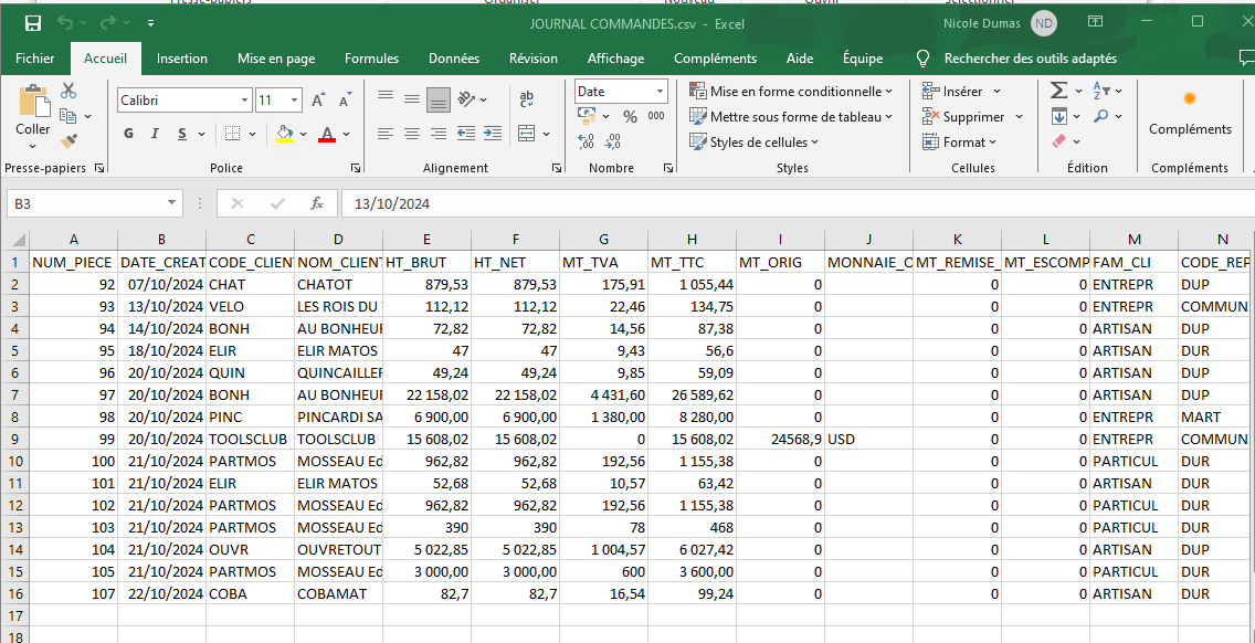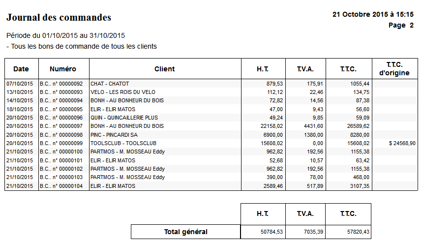 Journal des commandes