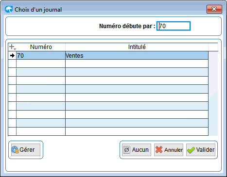 Cet écran vous permet d’accéder à la liste des journaux prédéfinis en comptabilité en cliquant sur