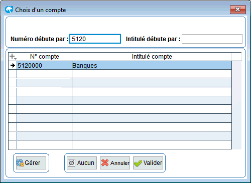 Attention, le compte renseigné doitobligatoirement être le compte de trésorerie renseigné dans la fiche de journal de trésorerie