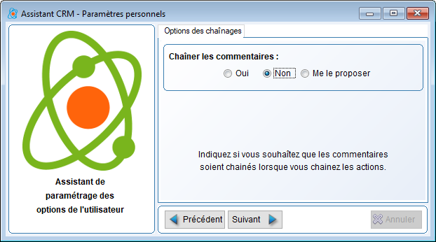 Choisissez cette option si vous souhaitez que le logiciel vous propose de chaîner ou non les commentaires lors du chaînage des actions.